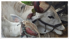 Understanding the plight and poverty of the owner and the injured bull, we decided to do something about it. Henna Dey contacted the Gavshala at Kanadia road and Gavrakshak Mr Tiwari was very supportive and sympathetic and came forwarded to help. He provided one young bull (which was rescued from a truck going to the butchers) in exchange for the old injured bull. The old bull received treatment by our NGO and the Gavshala shelter. Neelam Dubey and Henna Dey visited the bull at his new Mau residence, he seems to be happy with the new owner.
