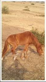 This way the horse one leg was amputated and now he is almost healed. He is waking with 3 legs. Friendly and cute. Abhimanyu saves this horse life by taking the action in spite of financial constraint. Horse name is Preet.